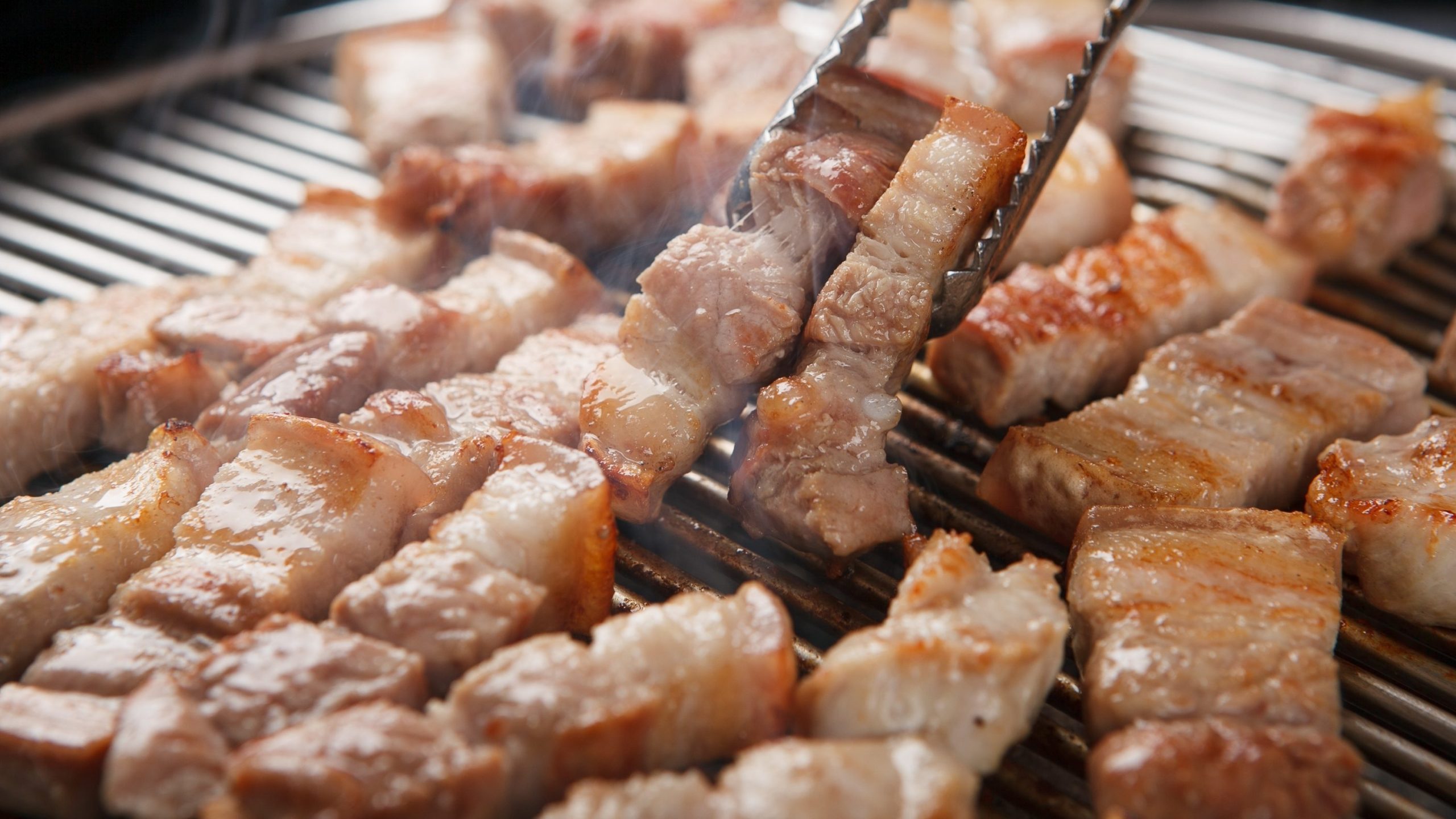 삼겹살(サムギョプサル): 두툼하게 썬 돼지고기 삼겹살을 철판에 구워 먹는 인기 메뉴입니다.