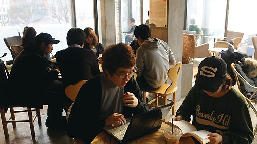 한국 카페의 특징 중 하나는 노트북으로 일을 하거나 노트를 펼쳐 공부하는 사람들이 매우 많다는 점입니다. 특히 대학가나 오피스가 근처의 카페에서는 아침부터 저녁까지 같은 자리에 앉아 작업하는 사람들을 자주 볼 수 있습니다.